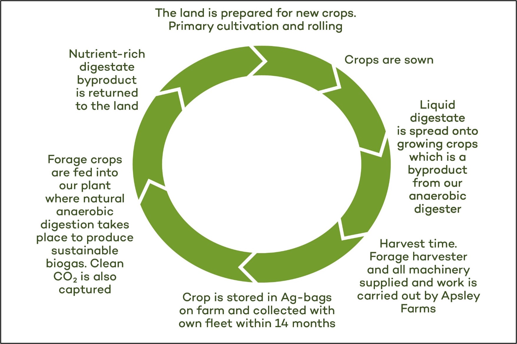 Sustainability and efficiency are at the heart of everything we do at Apsley Farms. We’ve adopted cutting edge technologies and turned low value crops into renewable energy. We focus on a circular economy by returning the nutrients in our digestate products back to the land as a fertiliser.